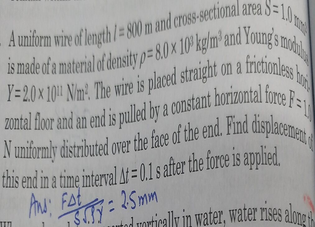 A steel wire is 1m long and 1mm2 in area of cross-section. If it takes 200 N to stretch this wire by 1mm, how much force will be required to stretch a wire of the same material as well as diameter from its normal length of 10m to a length of 1002 cm?