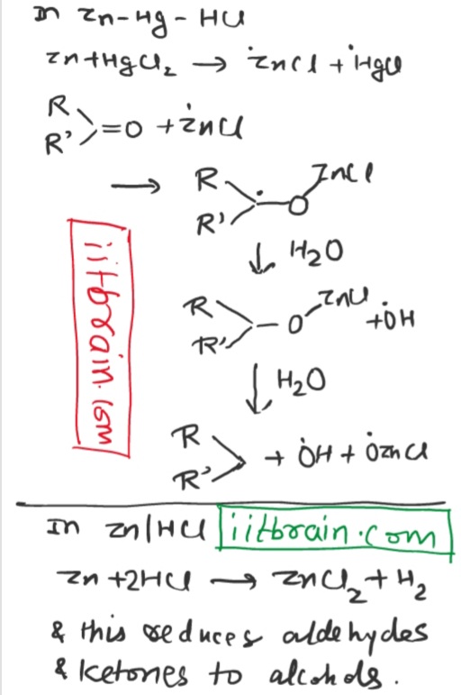 Zn + HCl reduce aldehydes and ketones to alcohols while