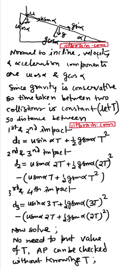 A perfectly elastic particle is projected with a velocity v on a vertical plane through the line of greatest slope of an inclined plane of elevation α.If after striking the plane, the particle rebounds vertically show that it will return to the point of projection at the end of time equal to?