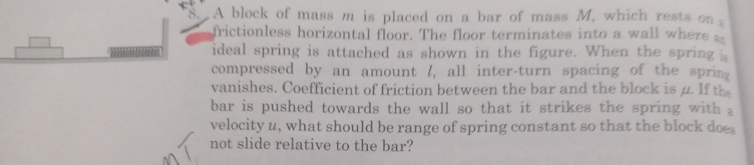 a block of mass m is pushed up a movable incline of mass nm and height h.All surfaces are smooth without friction.what must be the minimum value of u so that the block just reaches the top of the movable incline.