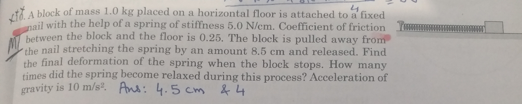 A block of mass 100 g is moved with a speed of 5 m/s at the highest point in a closed circular tube of radius 10 cm kept in vrtical plane.The cross section of the tube is such that the block just fits in it.The block makes several oscillations inside the tube and finally stops at the lowest point. Find the work done by the tube on the block.